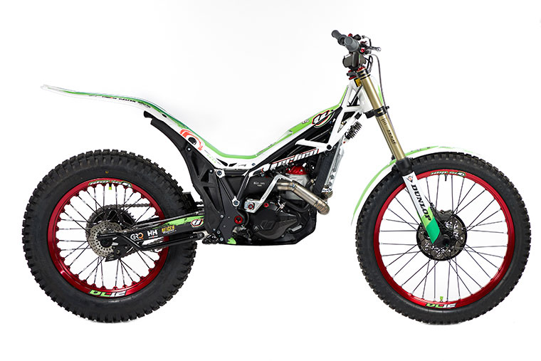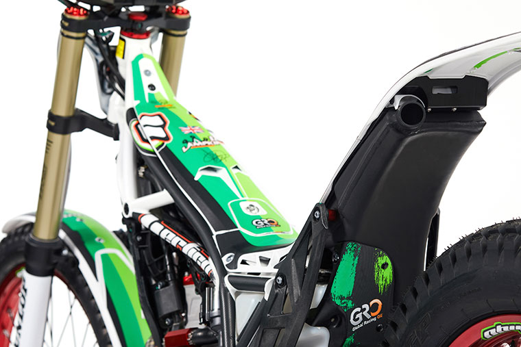 Vertigo’s signature multi-tubular frame is finished in a classy gloss white for this years edition. The new textured, two tone green, white and black graphics give a fresh and unique look to the bike whilst at the same time keeping true to Vertigo Motors traditionally colour scheme.