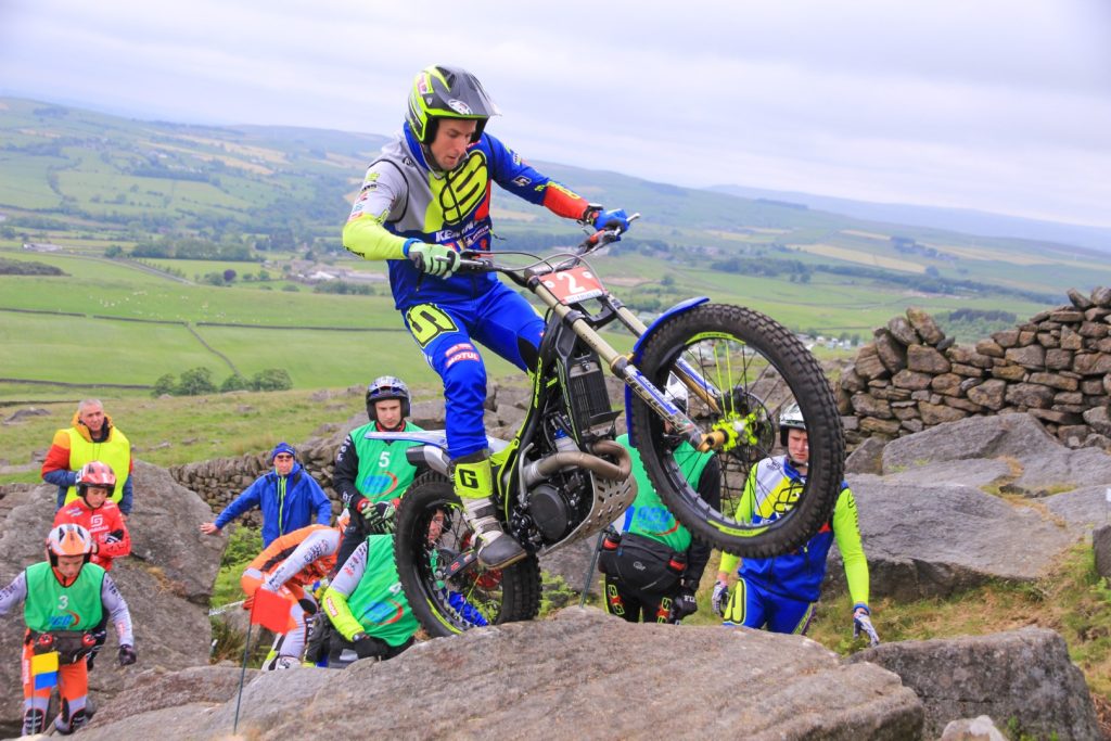 The fourth round of the 2022 ACU Trial GB series stayed in the north of the country in Yorkshire and Addingham Moorside, Silsden where the Yeadon and Guiseley DMC accommodated another good entry of 63 riders entered across the Trial GB, Trial 2, Trial 125 and Expert classes. After some early overcast damp weather, the heavens opened in the early afternoon changing the nature of the exposed course. This is a very demanding venue taking in the abundance of exposed rockery to make for a challenging 12 section three lap course. Huge rocks with no room for error would push the riders to the very limits of their abilities.