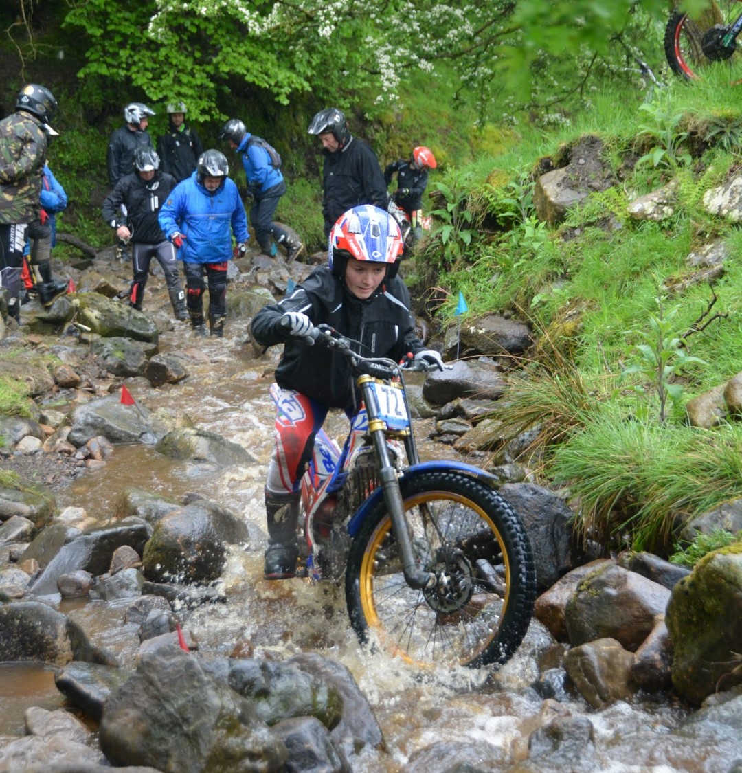Day 1 started at noon with the riders tackling the first tricky sub over the River Cover observed by Barry Watson. Due to the torrential rain throughout the week, this made for some nervous dabbing with riders not wanting to get wet feet! From there, the riders were met with narrow gorges at Sections 5, 6 and 7. The loose sandstone rocks were kicked up and dislodged after every bike, making for a very scrambled section with no two attempts being the same.