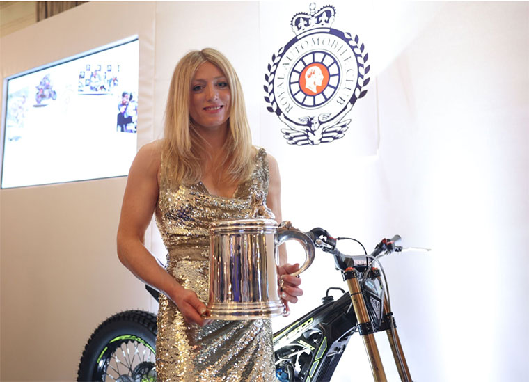 TrialGP Women superstar Emma Bristow’s incredible achievement of winning seven consecutive Hertz FIM Trial World Championship titles was recognised by the UK’s Royal Automobile Club on Monday evening when she was presented with the prestigious Torrens Trophy.