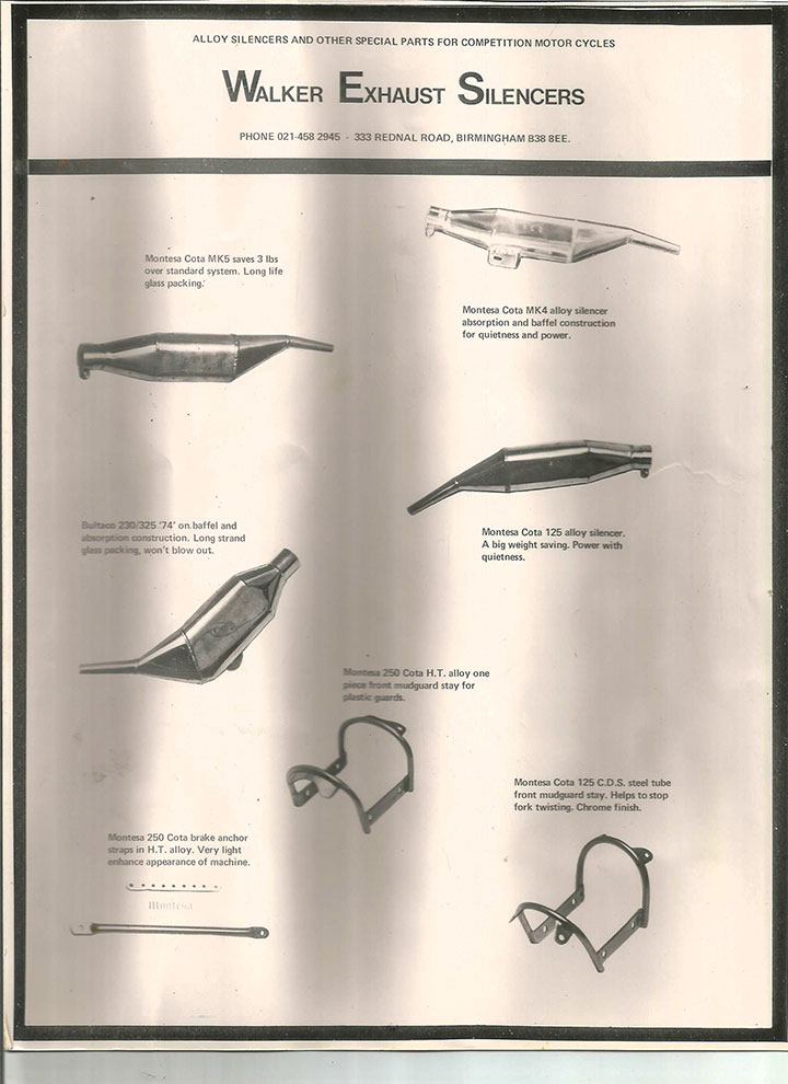 Trials rider from his youth, he starts his activity from Birmingham in 1973 producing special silencers and other components like mudguard stays and brake arms, all in aluminium alloy, for the trials motorcycles of the time.