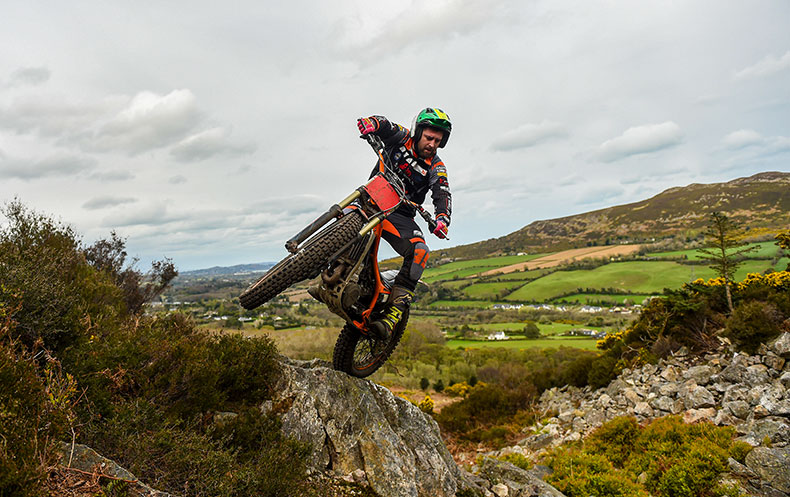 The weather was kind to the riders, although cool at times the rain held off which made conditions much easier for the riders. That said, three laps with thirteen tough, grueling sections along the Sugarloaf Mountain was far from easy. Doyle and Hanlon both competed in the final championship round the previous day in the north of Ireland which would have them match fit over Burton. Lack of bike time cost Burton, he got off to a bad start with 2 failures on his first lap leaving him out of contention but fought back well on the last lap to finish third overall with a total of 27 marks lost. The battle for the win would be an all-day affair between Doyle and Hanlon with the lead changing hands twice on the last lap.