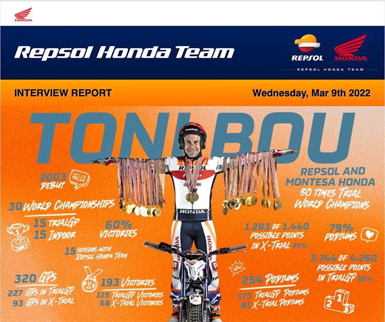The 30-time Trial World Champion begins his sixteenth season with the Repsol Honda Team this Friday, with the first round of the X-Trial World Championship.