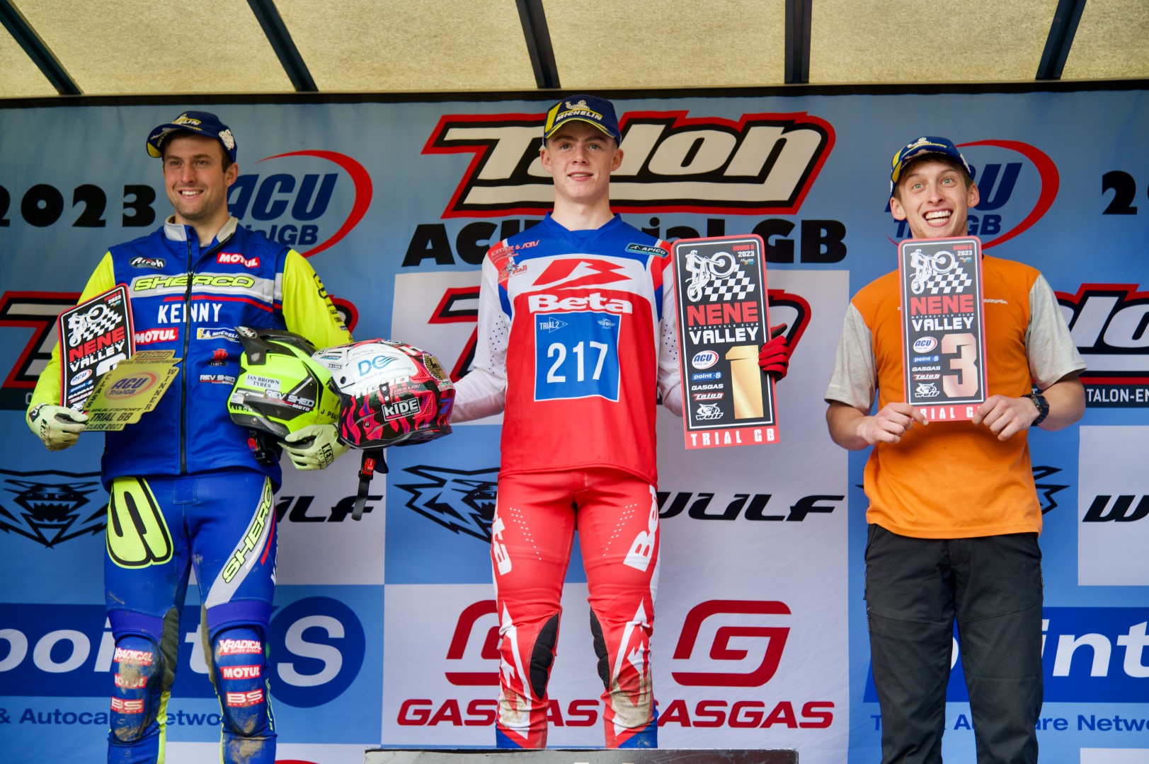 The 2023 ACU Trial GB Championship concluded at this new venue found north of Kettering at Geddington for round eight. Nene Valley MCC worked with the ACU Trial GB team to bring a good event together for the final of the 2023 ACU British Trials Championship and the fifty-two riders entered across the four classes: Trial GB, Trial 2, Trial 125, and Expert all had a good days sport. They competed over the mandatory three laps of 12 sections on a damp day. With rain on the opening lap, the organizers made the decision to ease some of the hazards for the second lap. As the event progressed some became more difficult but as always, the riding standard was very high.