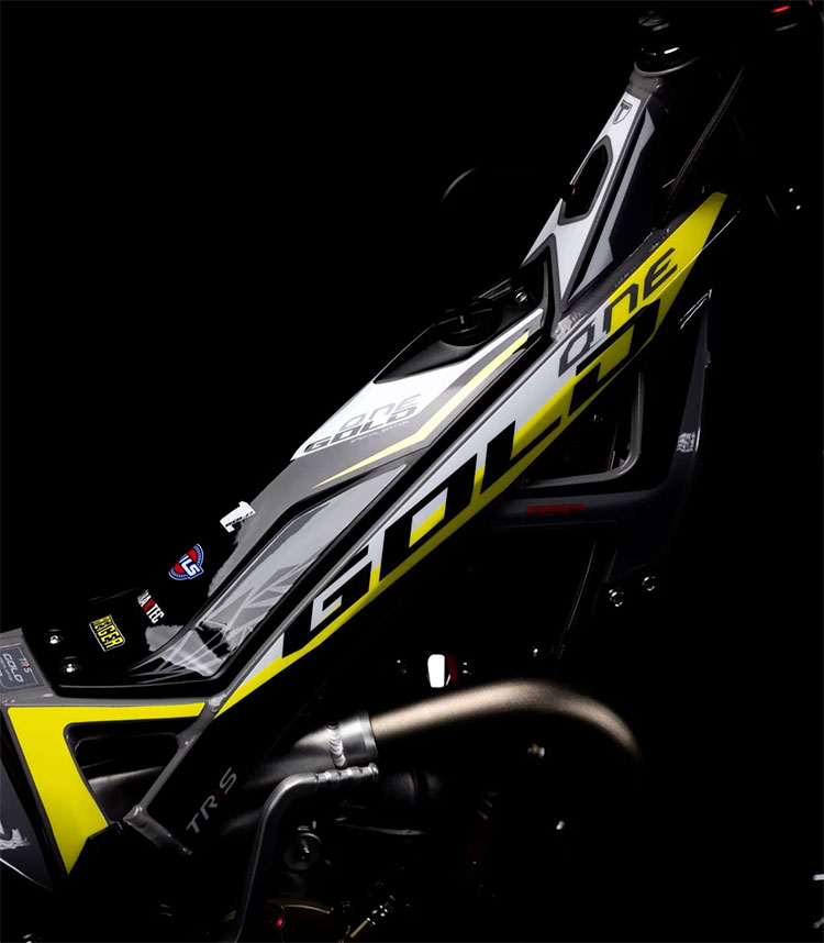 •The new TRRS-designed swingarm in black is fitted. This provides more dimensional accuracy, as well as greater sensitivity and control over the rear axle.