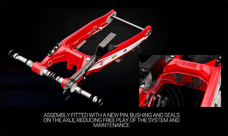 - New TRRS swing arm red design providing higher dimensional precision and greater sensitivity on the rear axle.