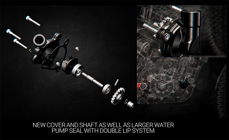 - New cover and shaft as well as larger water pump seal with double lip system.