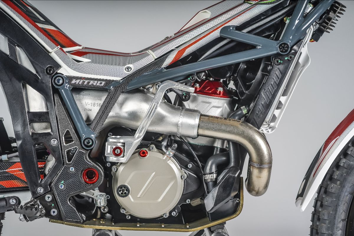 The Vertigo Nitro RS3 DL12 features premium components throughout its chassis. Highlights include the new Tech suspension forks with Kashima coating, delivering improved smoothness and performance, and the Reiger rear shock, a benchmark in the trial industry. New S3 steel footpegs and pedals with optimized tips enhance control and feedback in challenging conditions.