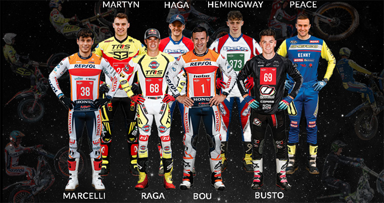 Speaking about the difficult process of selecting riders Dougie Lampkin explained: “Unfortunately with only eight places up for grabs it is not possible to include everyone who we would like to have done, it’s as simple as that. Each of the eight riders, have been selected on merit and on their performances this year, but when it came down to the final spot it was so hard to split the young British trio of Jack Peace, Billy Green and Jack Dance, so we thought that the fans should decide. To be honest we were overwhelmed by the number of votes that came in for all three riders, though it was Jack Peace who came out on top. The good news is that the other two guys will be on the bench and will be ready to jump in if needed, I am sure.”