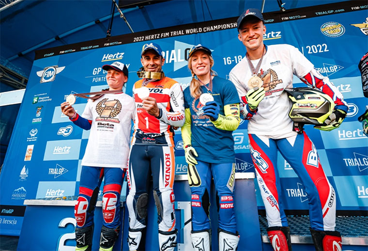 It’s a wrap! The 2022 Hertz FIM Trial World Championship signed off today at Ponte di Legno where Emma Bristow (Sherco), Sondra Haga (Beta) and Denisa Pechackova (Beta) joined Toni Bou (Montesa) in being crowned champions at the TrialGP of Italy!