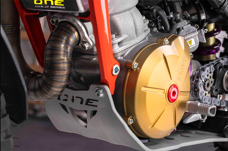 The new TRRS Gold is equipped with multiple carbon fiber components such as the air filter box, the front mudguard holder, as well as the exhaust protector.