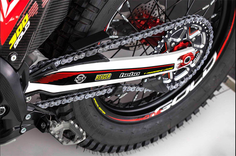 In the cycle part, as a novelty in this edition, it is equipped with the new designed TRRS swingarm that gives it more dimensional precision, as well as a performance that provides a greater feeling on the rear axle. All this together with the Reiger 3-way shock absorber with Hydrostop regulation used in competition by our top rider Adam Raga, with the specific rocker link for this model.