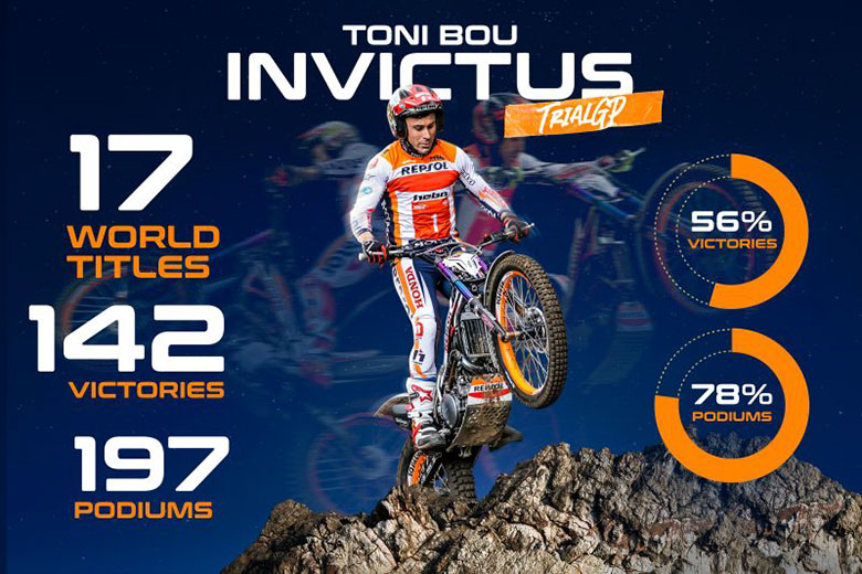 This season, the Montesa Cota 4RT rider has claimed a total of 10 victories. Since Bou started competing with the Repsol Honda Team in 2007, he has won every title available, becoming the dominant force in trial riding.