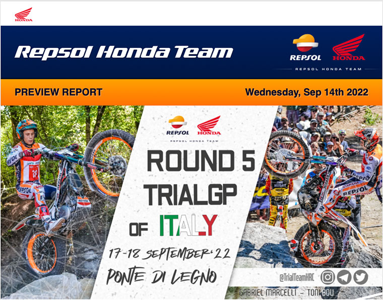 The Repsol Honda Trial Team rider heads to Italy, the final round of the calendar, looking to secure a new TrialGP world title. Team-mate Gabriel Marcelli will be on the hunt for a best season finish.