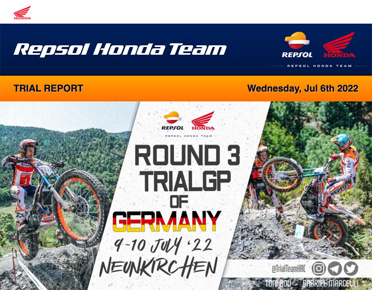 Germany plays host to TrialGP this coming weekend as the elite of the speciality tackle rounds five and six of the world championship. The new venue for the event will represent a further challenge for the Repsol Honda Trial Team riders.