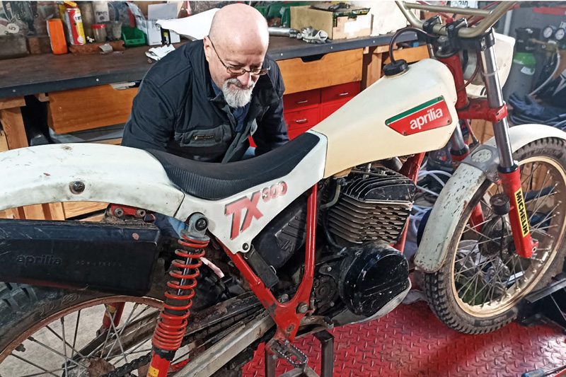 Valenti Fontsere talks with Marcello Stampacchia, creator of one of the most beautiful trials machines of its time: the Aprilia TX-300.