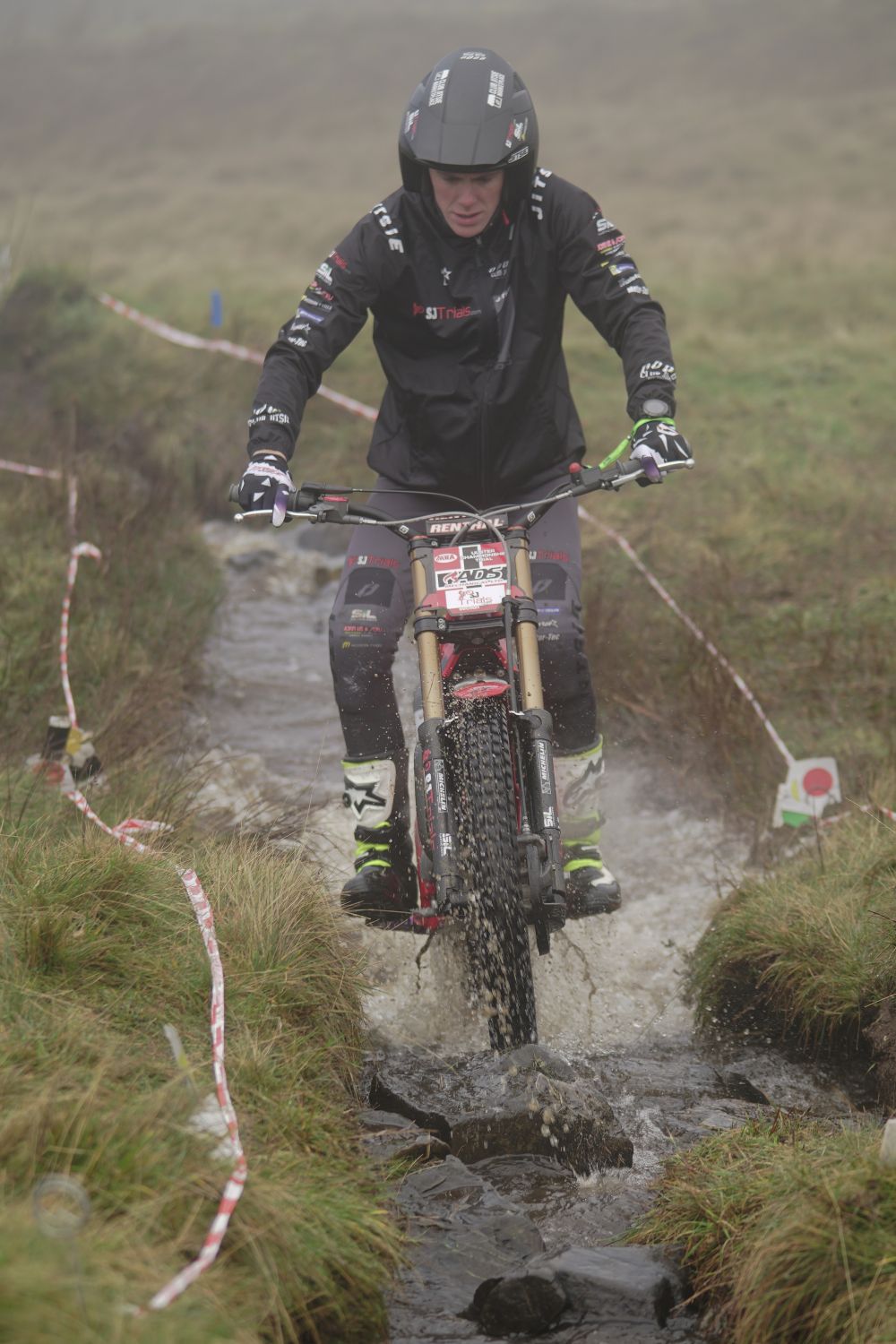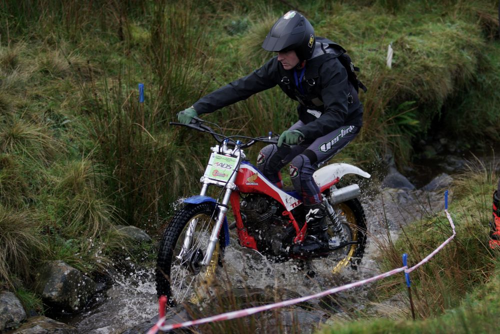 Jay Pyper sitting 2nd in the SJ Trials elite class of this years championship makes a splash in round 3 at Slieve Croob.