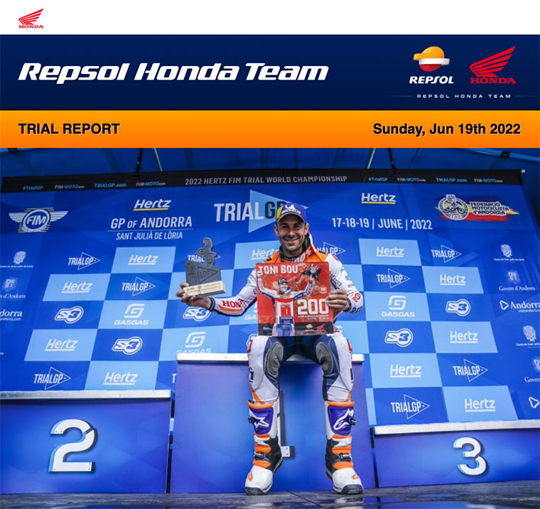 Repsol Honda Trial Team rider, Toni Bou, seals a 200th Trial World Championship win (indoor and outdoor) in the Andorra TrialGP.